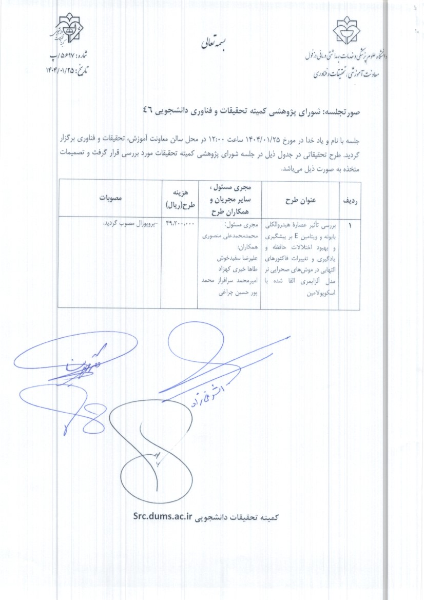 سومین صورتجلسه شورای پژوهشی کمیته تحقیقات